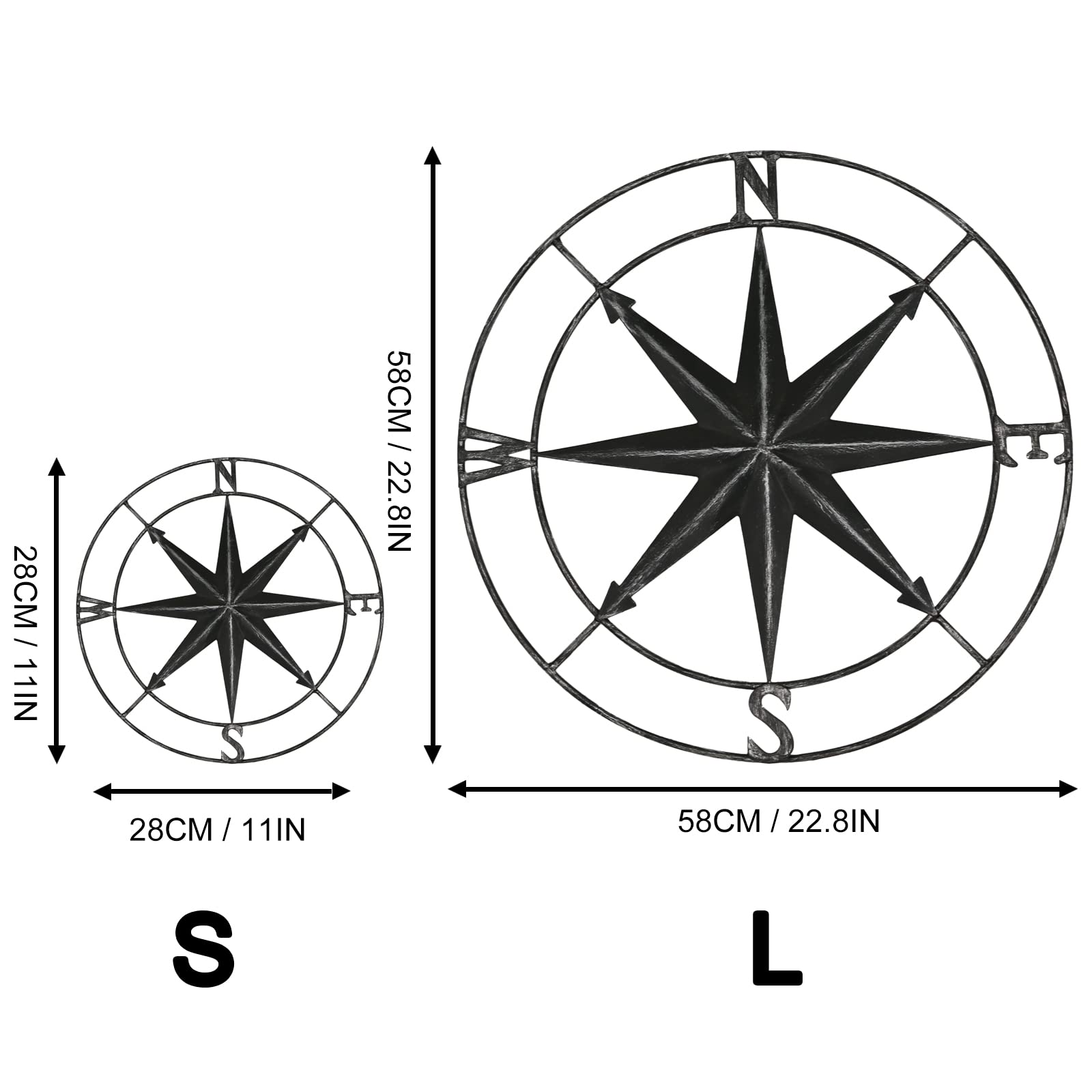 - 【WIDELY APPLICATION】: The awesome metal compass is a retro-style nautical decoration suitable for decorating the walls of living rooms, corridors and bedrooms. It can also be used for nautical themed party decorations, shop windows, hotel and table displays, beach restaurants or wall decorations.