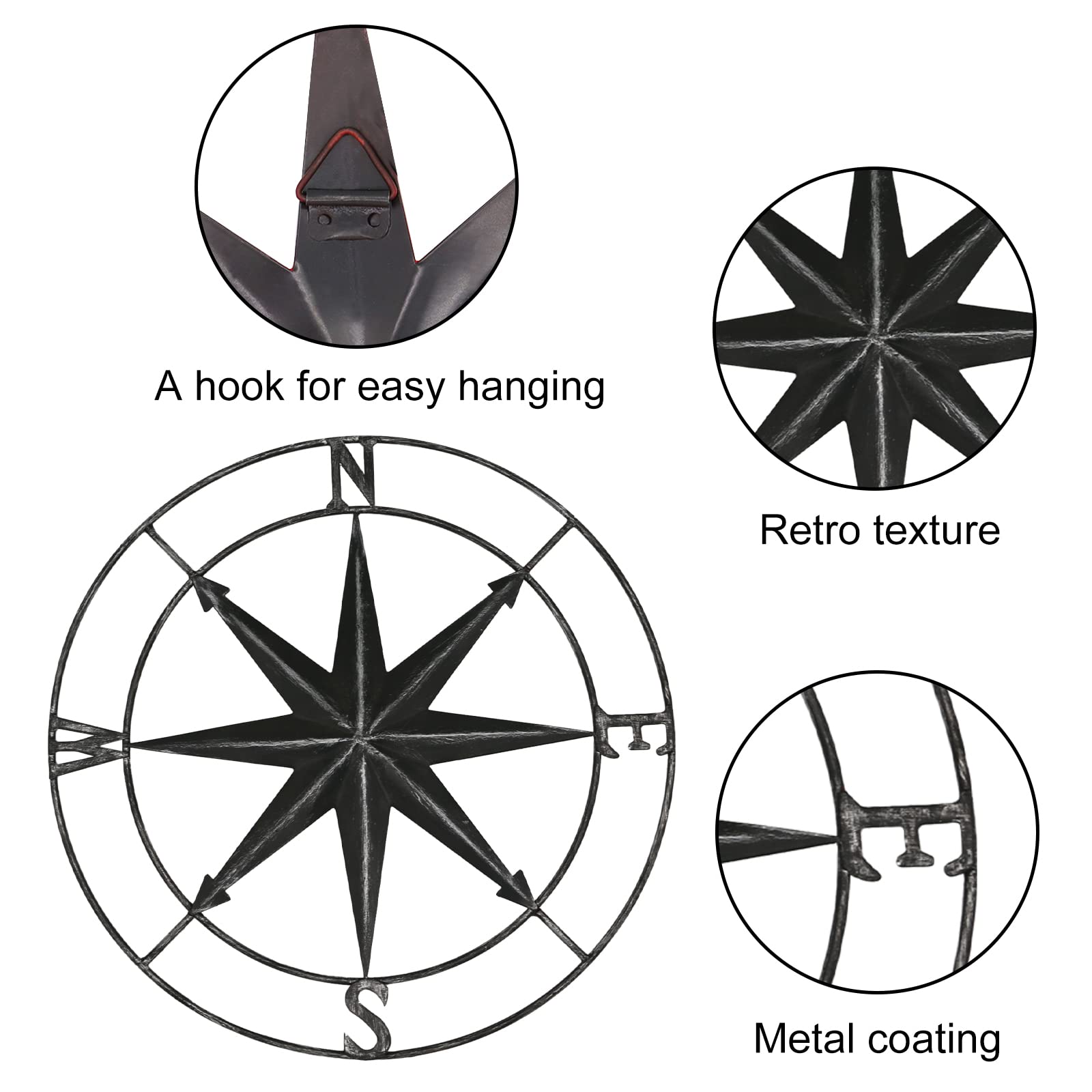 - 【EASY TO HANG】: A hook is designed behind the metal compass, which can be hung anywhere you like.