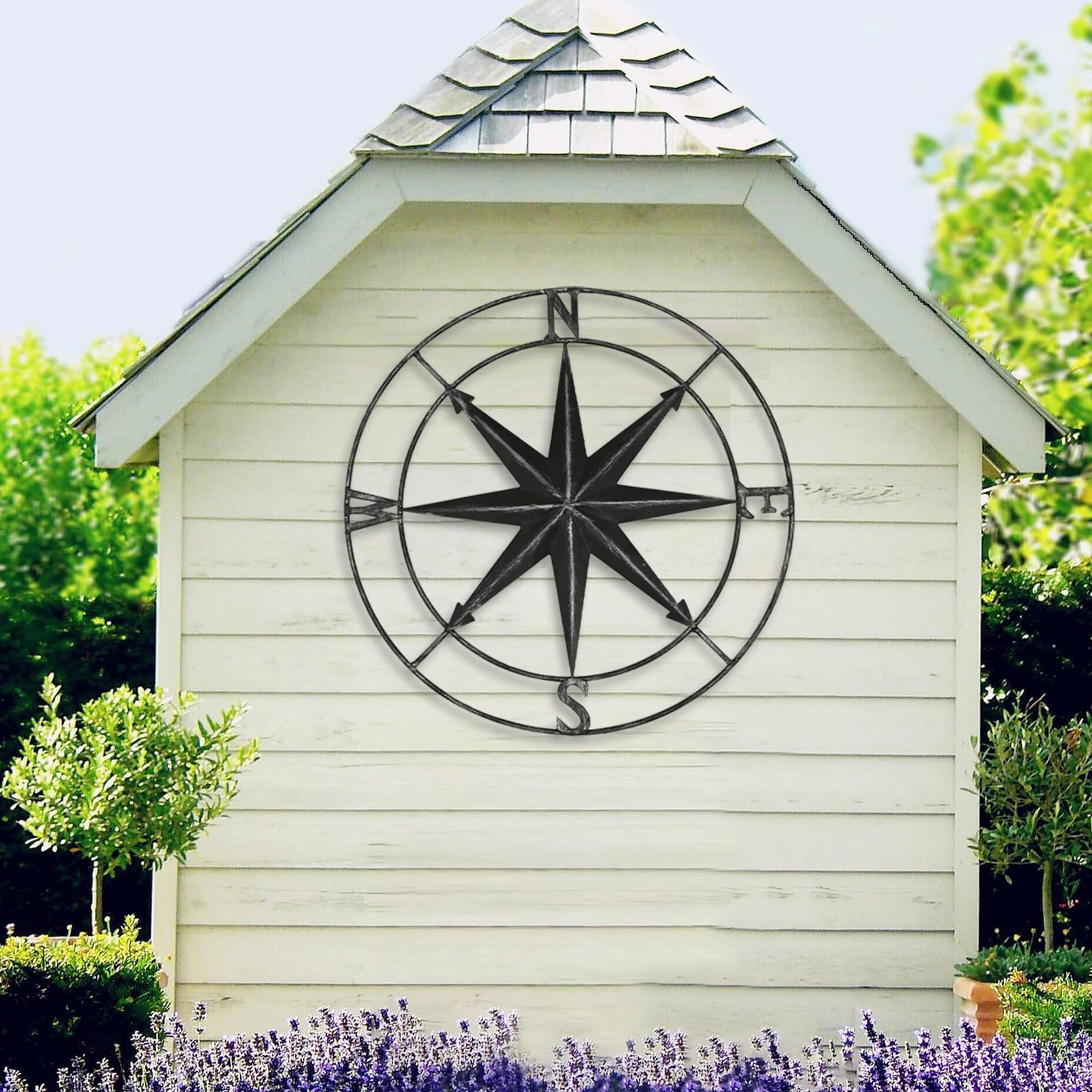 Round Metal Compass Decorative Compass Metal Wall Art Hanging Wall Sculpture 22.8 Inch Black Diameter Farmhouse Decor Indoor or Outdoor Sign