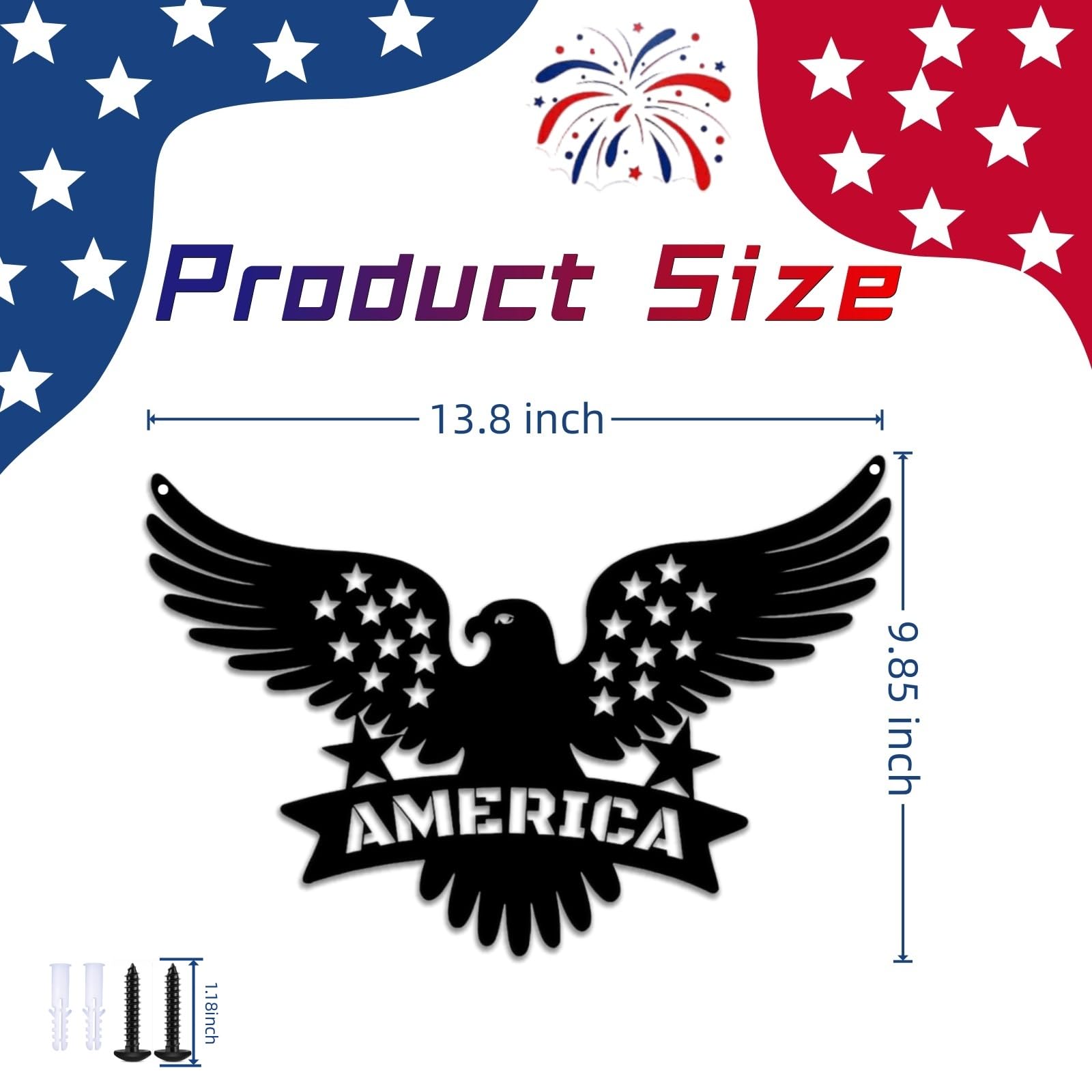 - Patriotic Eagle Design with Stars Features a majestic bald eagle with wings spread over embossed stars – a perfect patriotic wall art symbolizing freedom. Perfect for 4th of July decorations and year-round Americana home decor