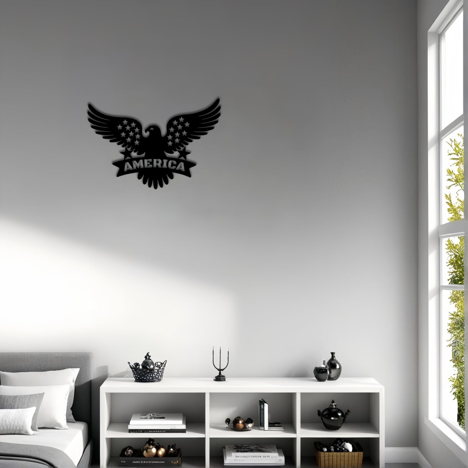 - Multi-Scene Versatility From outdoor eagle statue displays to office wall hanging, accents any space (13.8x9.85 Inch). Elevate your patriotic wall decor in living rooms, RVs, garages, or man caves