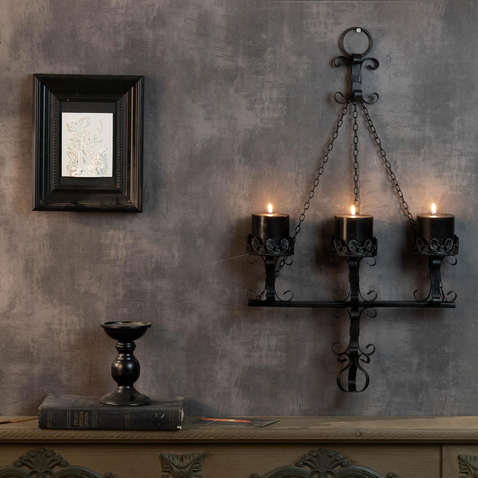 Black Wall Candle Sconces,3 Iron Candelabra,Gothic Victorian Decor,Rustic Wall Candle Holder for Bathroom,Living Room,Dining Room
