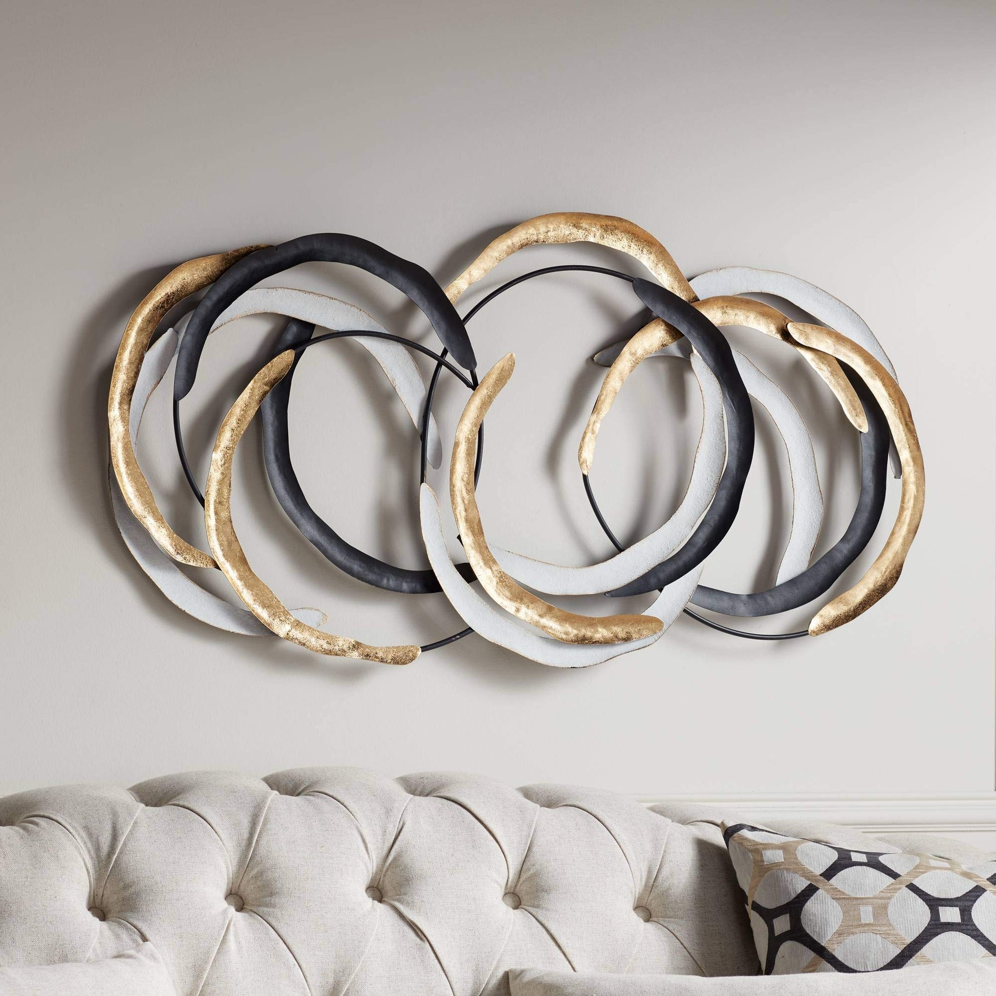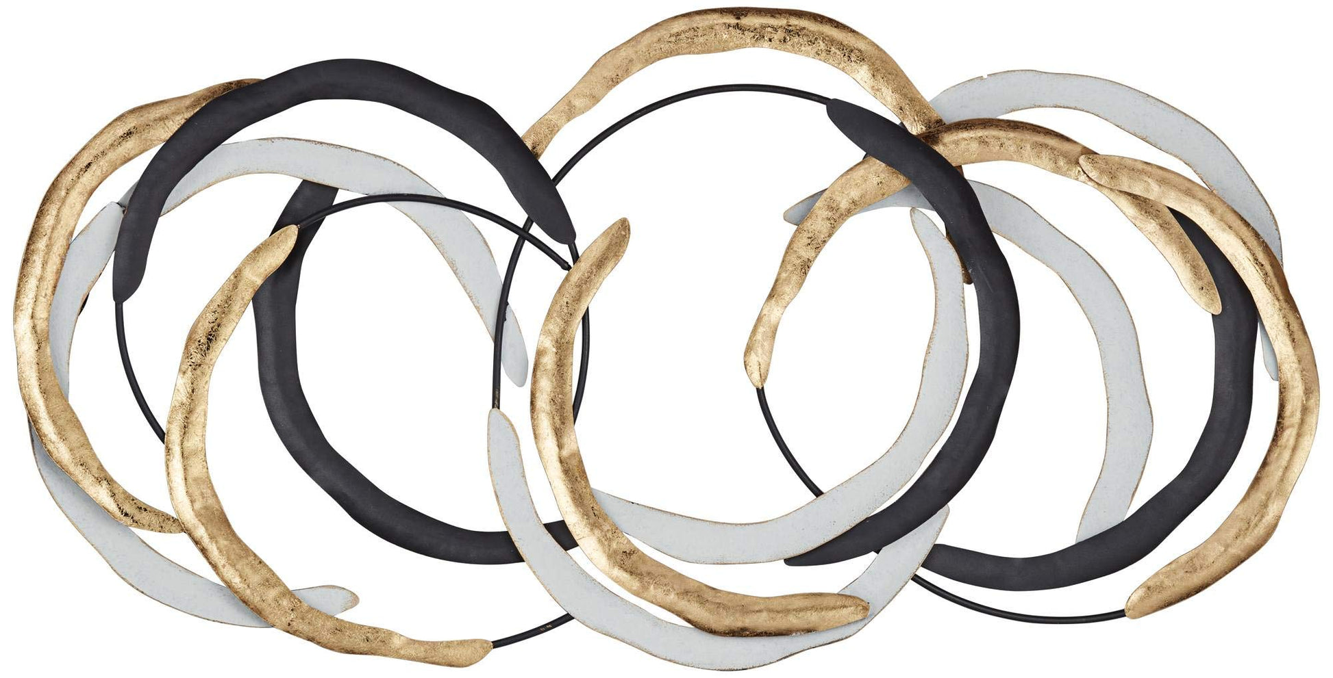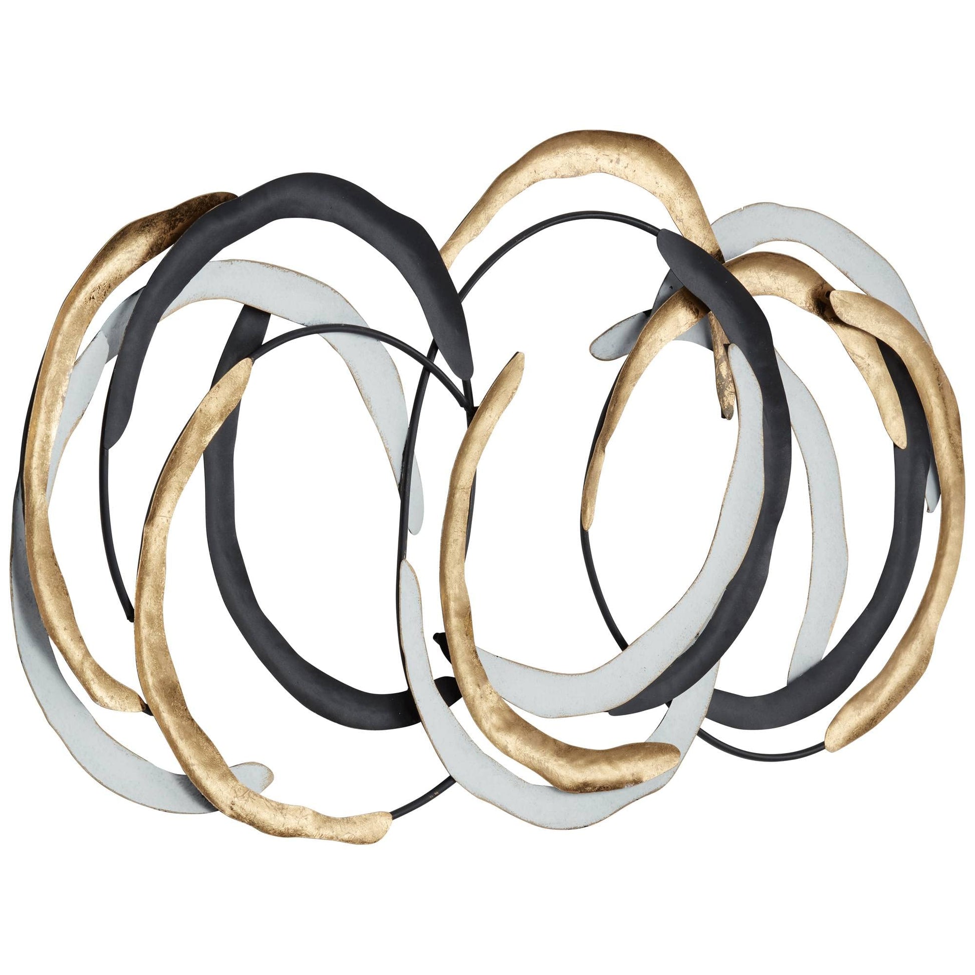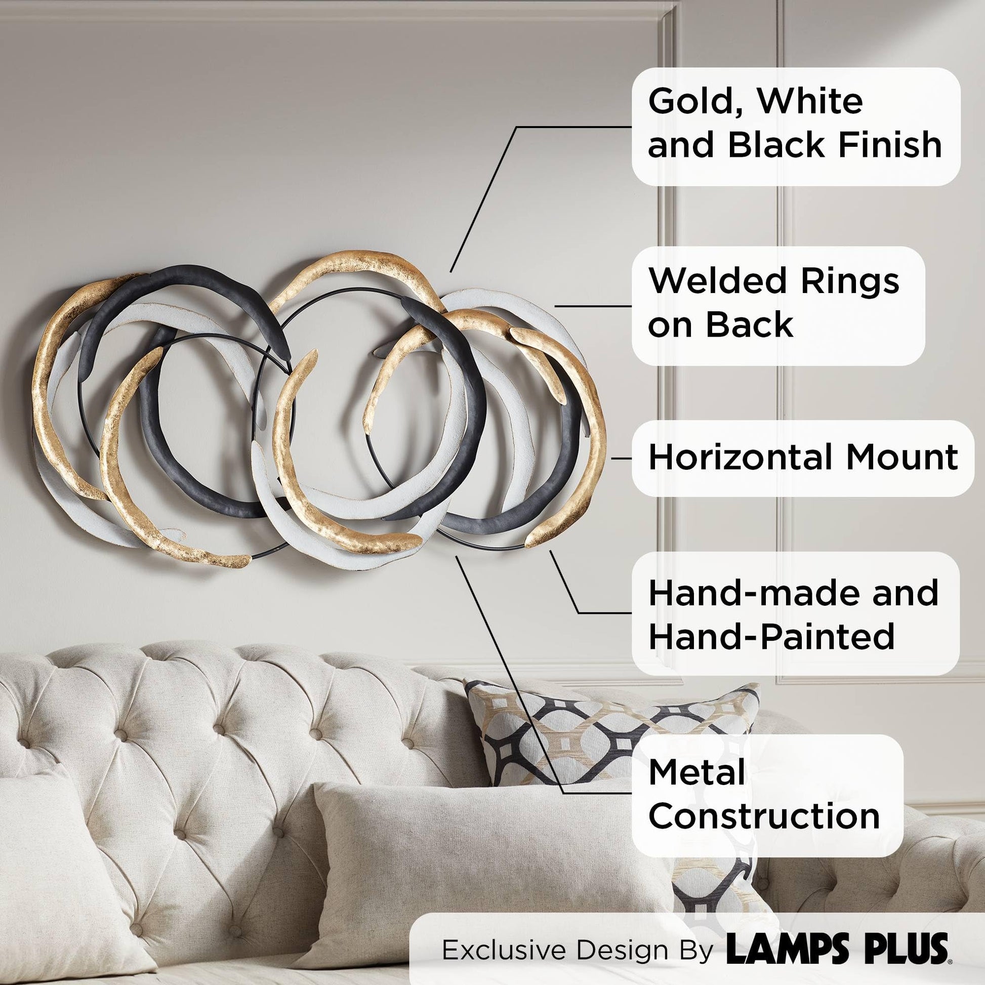 Details: Indulgent modern design yields an unforgettable aesthetic, making this fan metal wall art a perfect choice. Edgy, abstract art is refined for gallery-inspired use with a metal ensemble of rounded strips of metal, showcasing alternate finishes of shiny gold, white, and black. This hand-made piece becomes a central focus in a sophisticated living space.