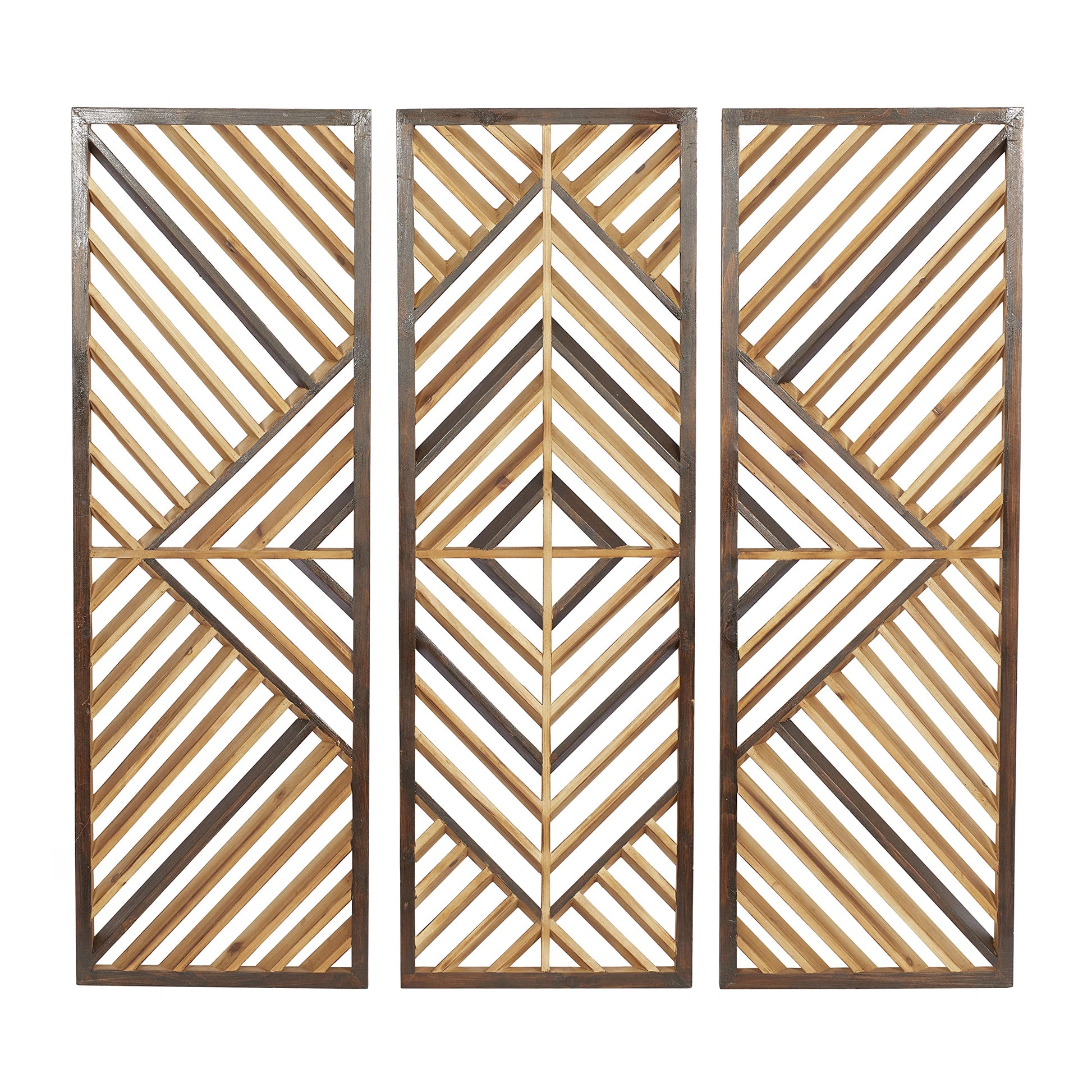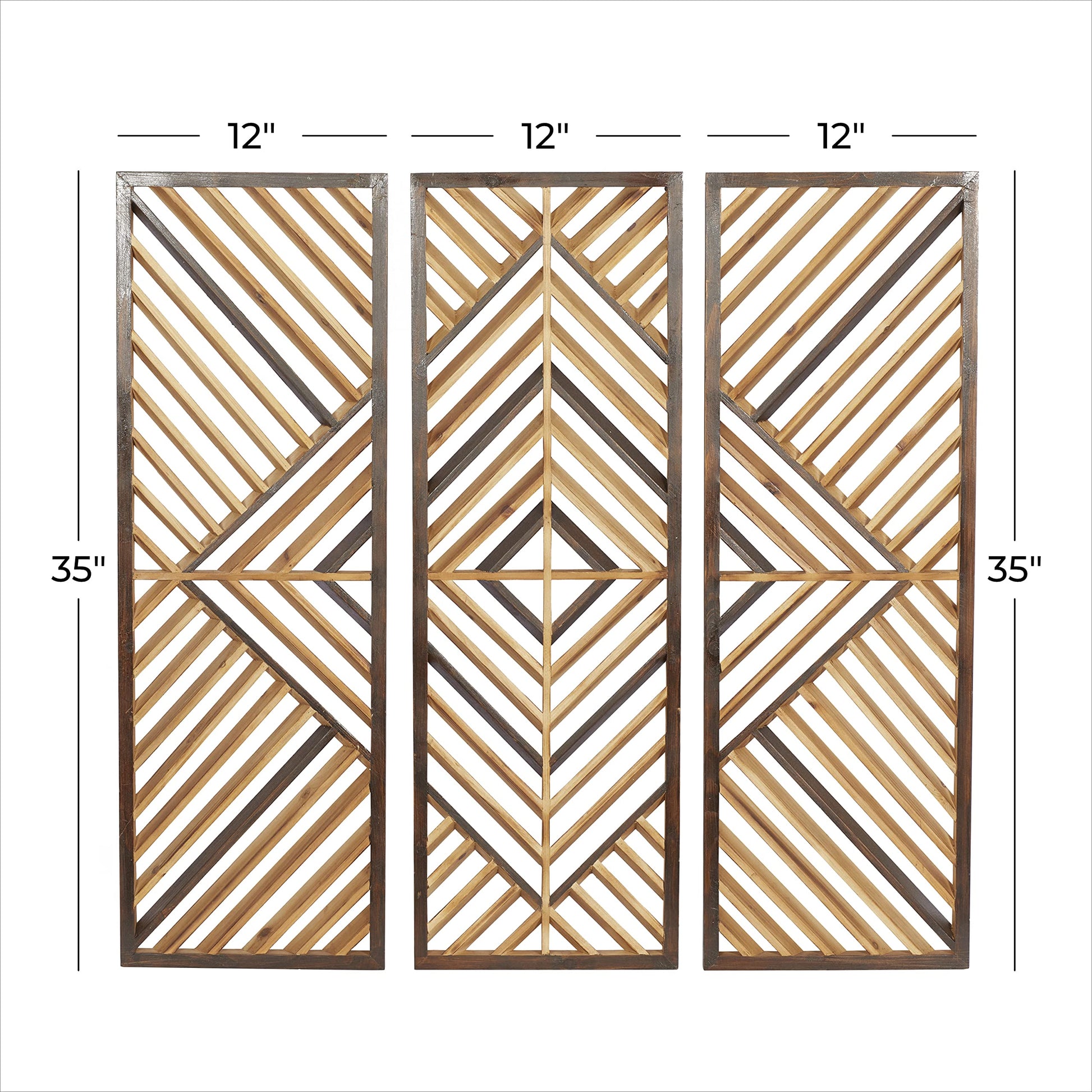 Deco 79 Wood Geometric Home Wall Decor Slatted Wood Design Wall Sculpture, Set of 3 Wall Art 12"W, 35"H, Brown