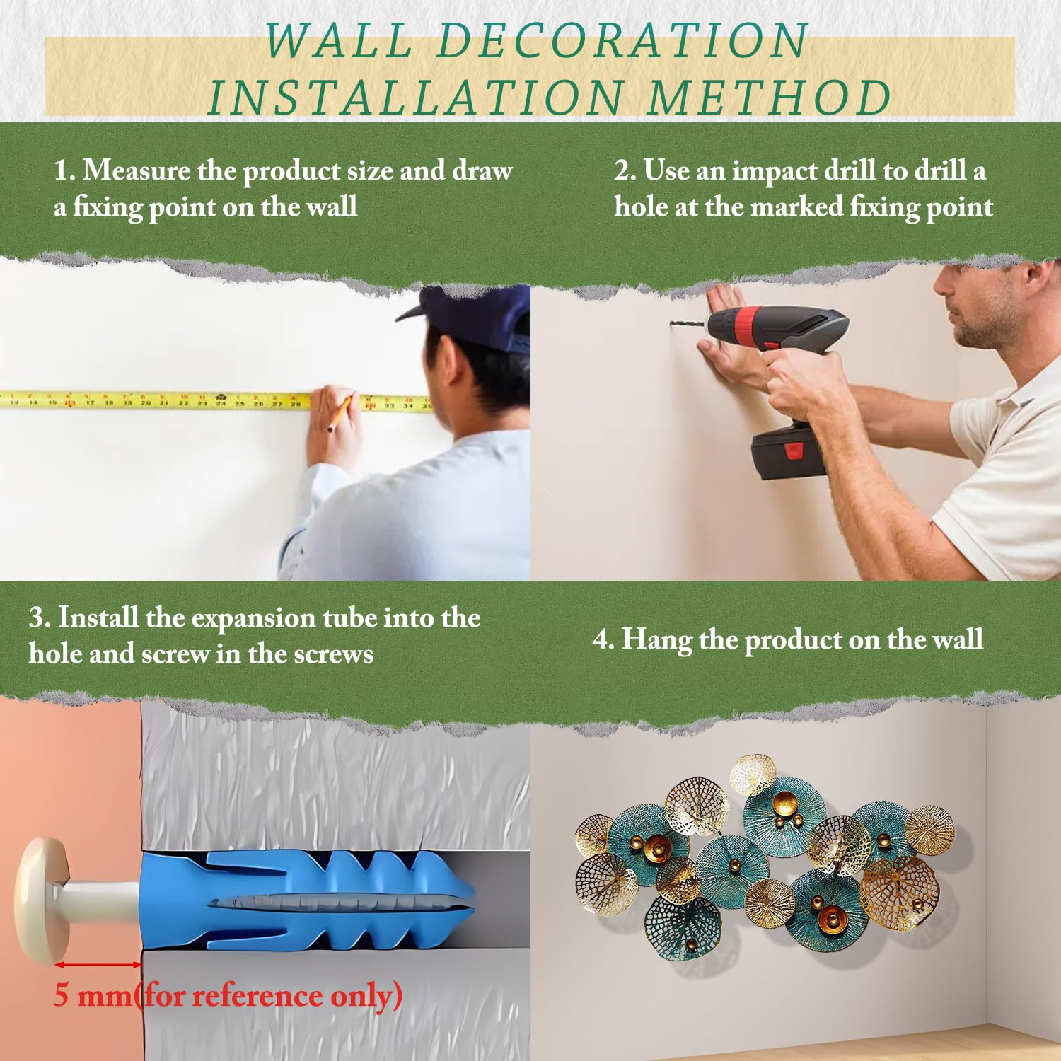 - Easy To Hang /Install : The hook is designed on the back of the morden metal wall décor. You only need to punch holes in the wall, fix the nails, and hang the wall decor directly. It is strong, simple and convenient. Bedroom, living room, study, office, hall, hotel, restaurant, cafe, exhibition hall, wall art decoration.