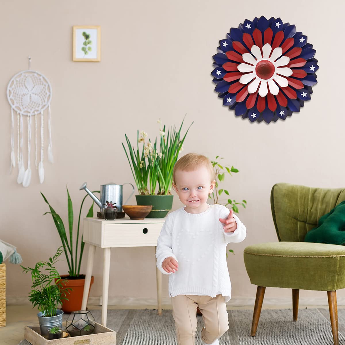 Goodeco Patriotic Metal Wall Art Flowers - 13" USA Accessories American Flag - Iron Floral Wall Decor for Balcony/Patio/Porch/Office/Bedroom/Living room,Unique Gifts