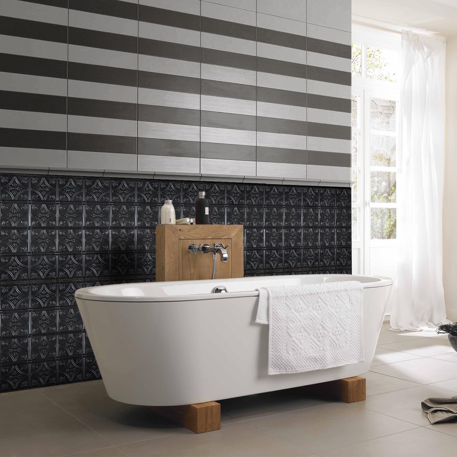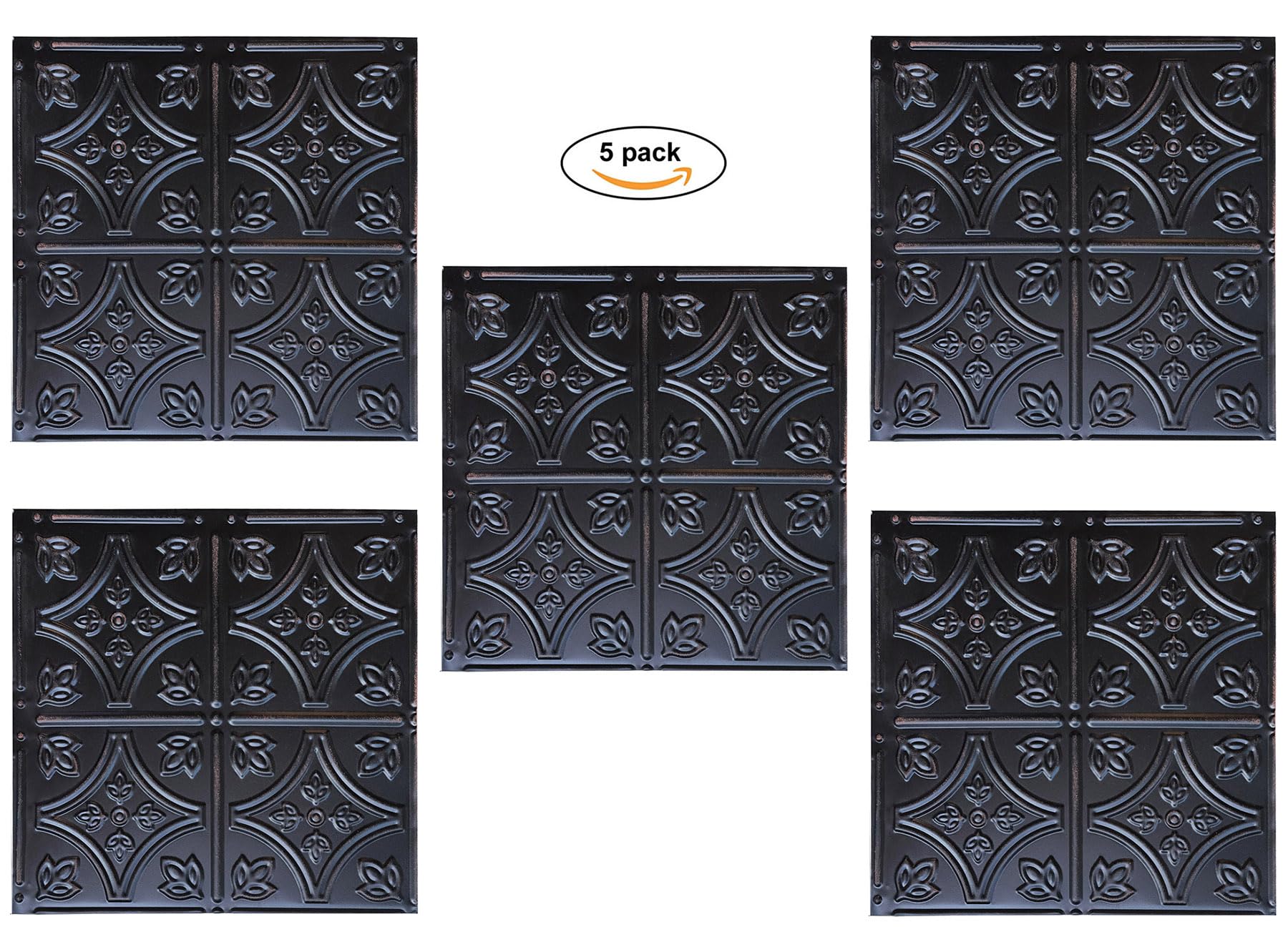 Holydecot Tin Wall Tiles Nail-Up Ceiling Tiles Stair Riser Kitchen Backsplash - Rustic Black 12x12 inch Sample, 5 Pack