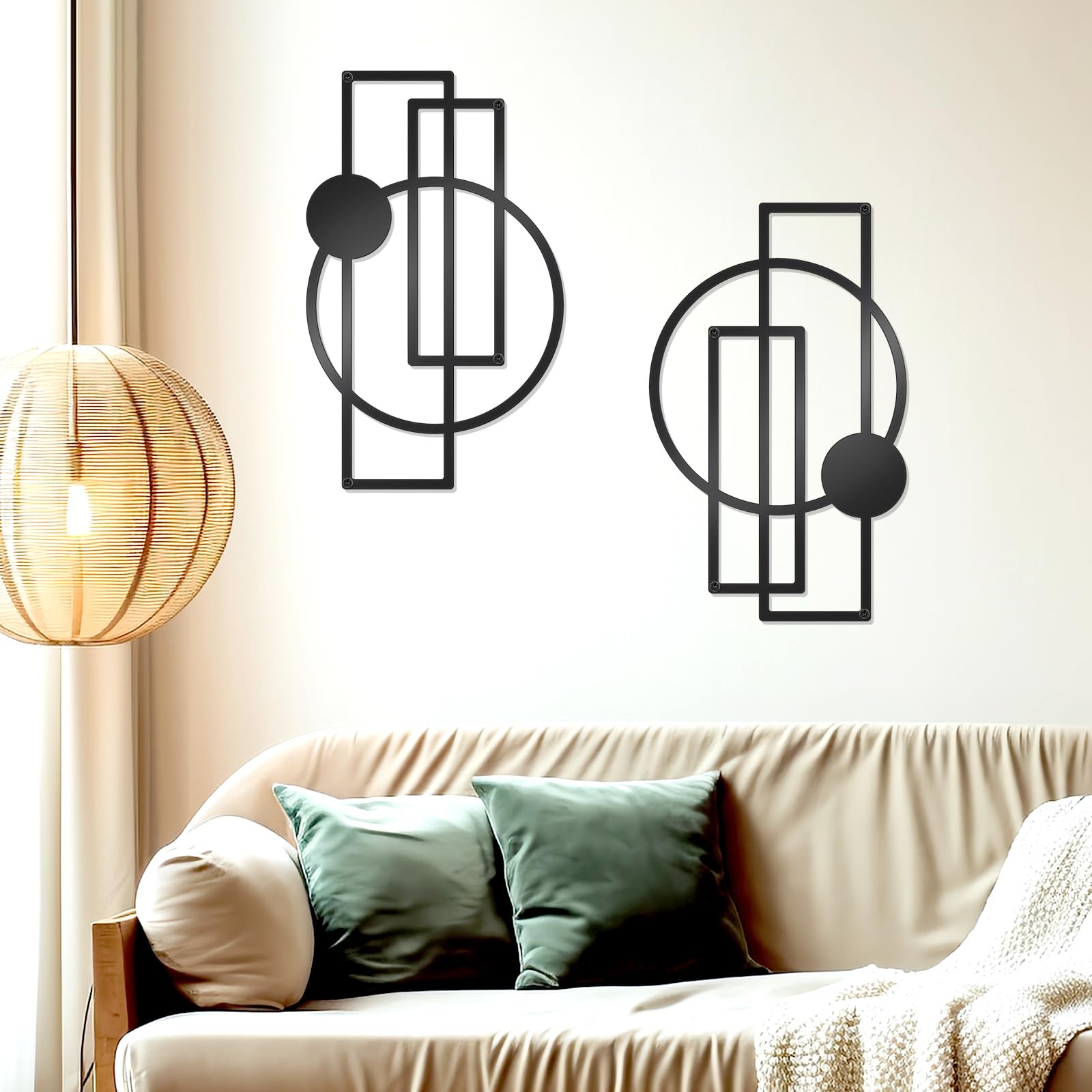 OYEFLY 2 Pcs Metal Abstract Wall Art,Modern Geometric Decor (Black, style 1)