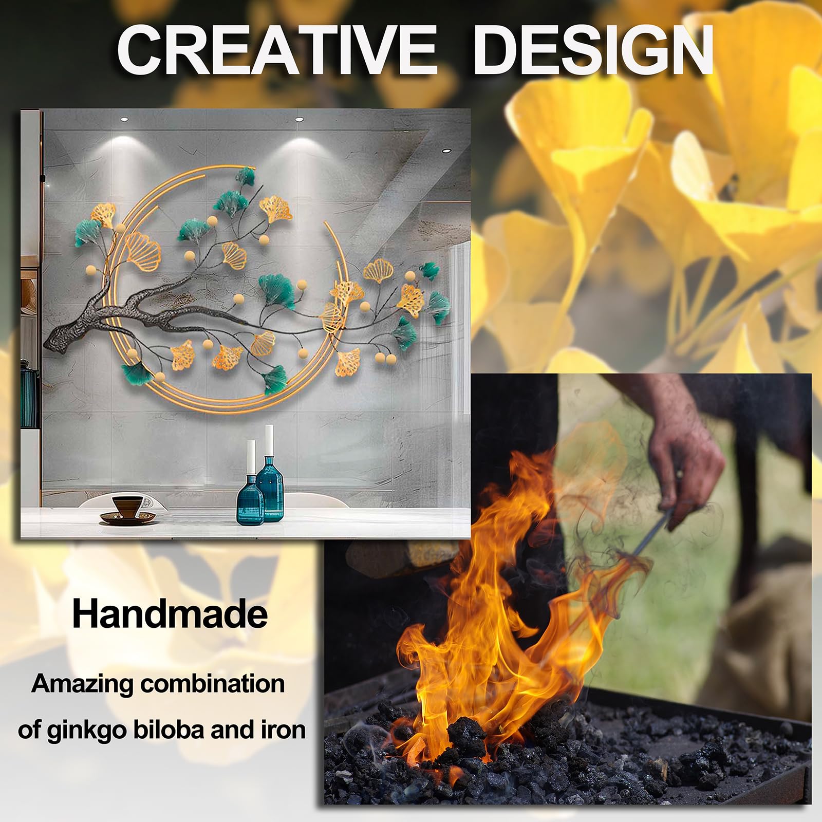 - HANDMADE GINKGO WALL DECOR : The Gold Metal Wall Art Wall Decoration Is Made Of High-Quality Wrought Iron Material, Which Is Not Easy To Rust. It Uses Hand-Painted Techniques To Make The Product More Distinctive And Textured