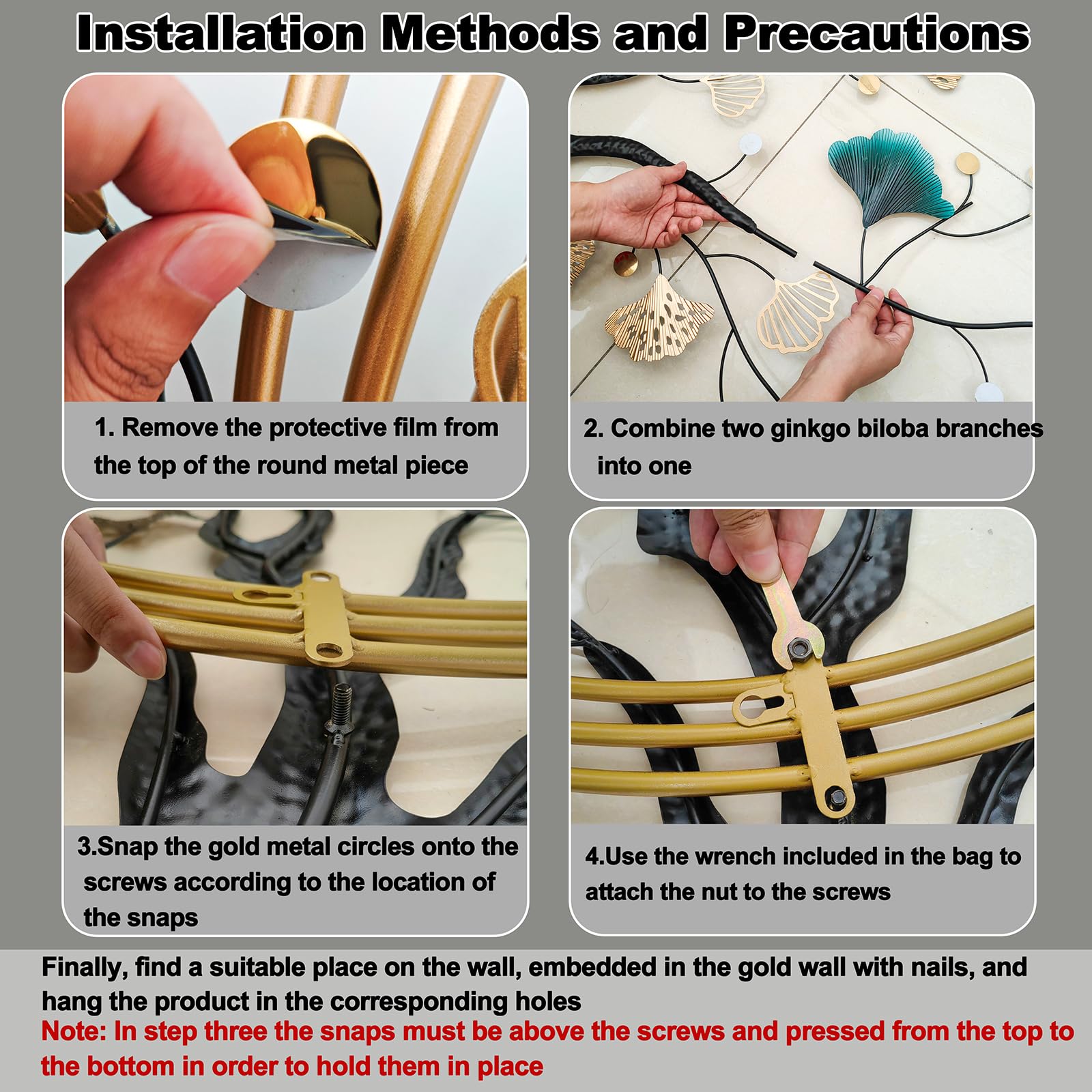 - METAL WALL GINKGO LEAF ART TIPS : Upon Receipt Of The Metal Leaf Wall Sculpture, Please Peel Off The Protective Film On Top Of The Round Metal Piece On The Front So That You Can Fully Appreciate The Beauty Of This Wall Decoration.