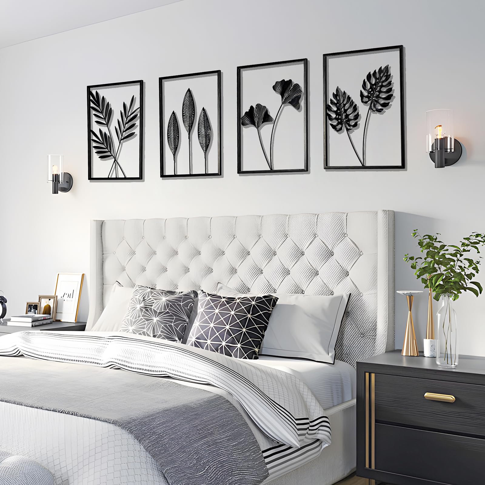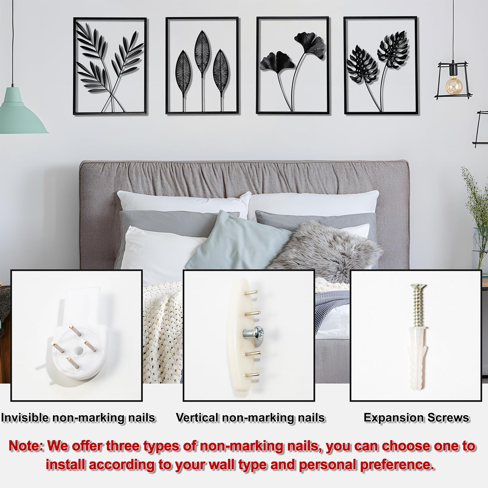 - GINKGO METAL WALL DECOR: These black metal wall art feature four different leaf patterns and a black painted coating. They are simple yet luxurious, and are modern wall decors to hang in the bedroom, above the bed, at home, in the office, in the hallway, in the kitchen, to create a warm atmosphere