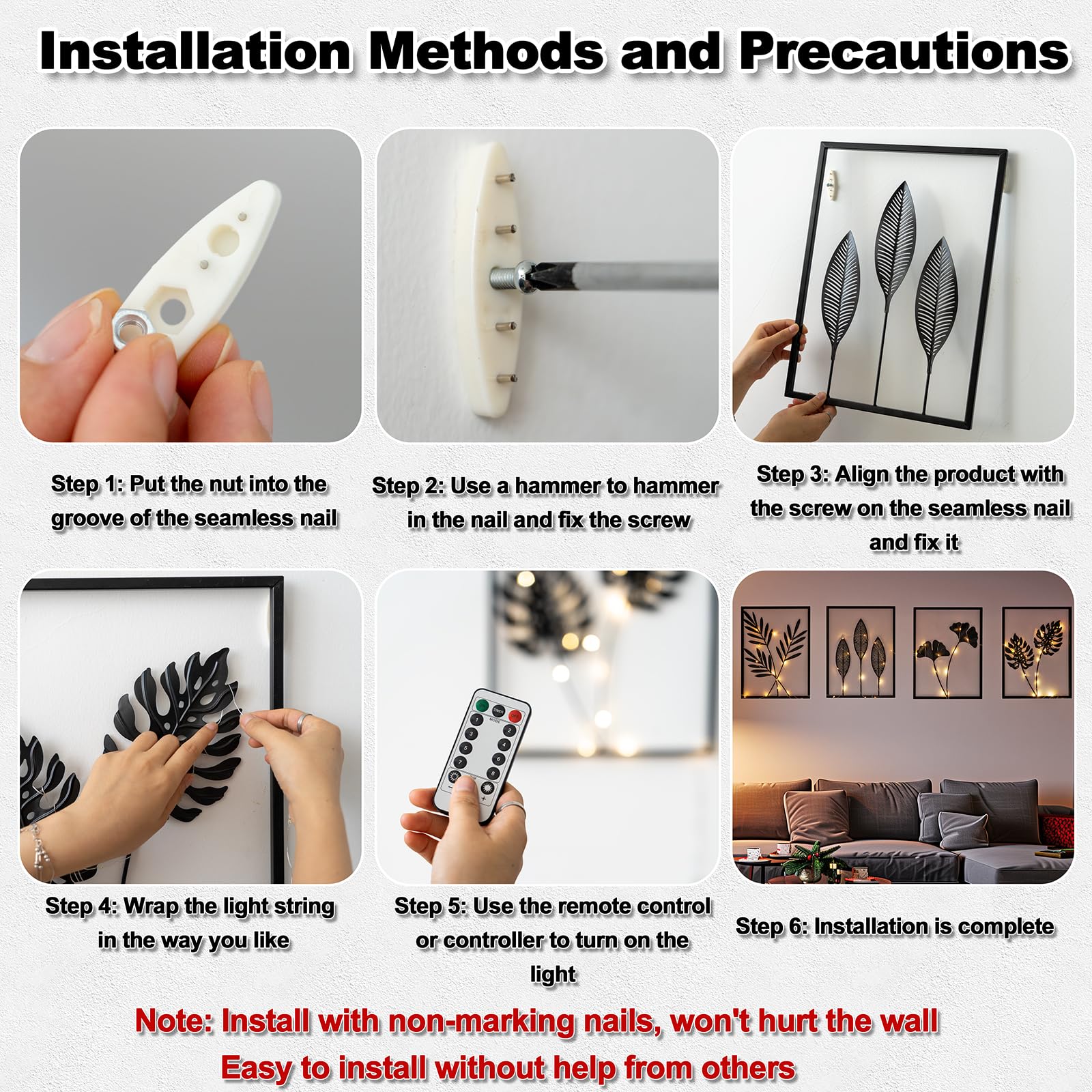 - DIY FUN, DECIDE FOR YOURSELF:This is a black metal wall decor set of four products and a light string. It has many combinations, full of DIY fun, and the greatest significance of product design. Everything is decided by you, not a fixed product appearance. DIY enthusiasts never accept everything that is arranged, especially fixed and unchanging. This is one of the main reasons why we did not install it in advance