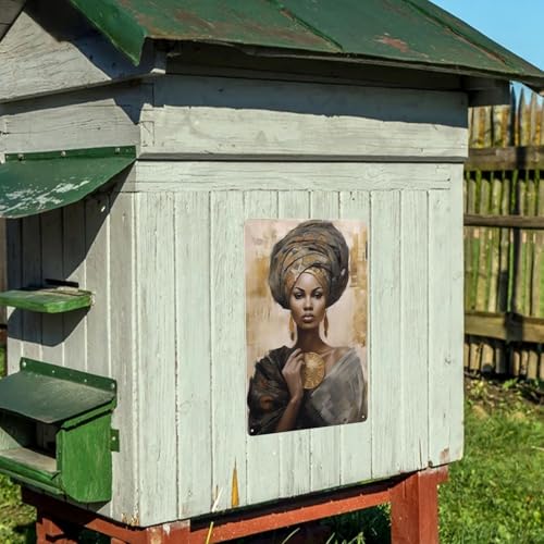 Room Men Cave Art Decoration Metal tin Sign Wall Decor Tin Signs African Black Woman African American Queen Garage 8 x 12 inches