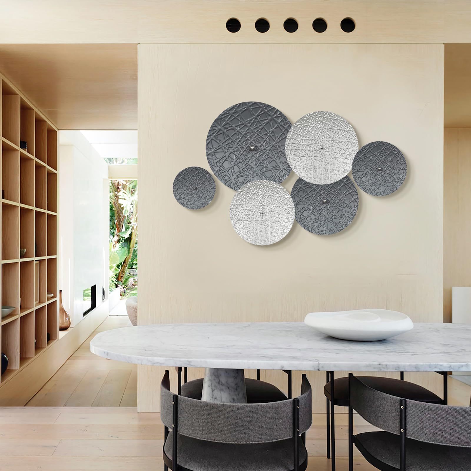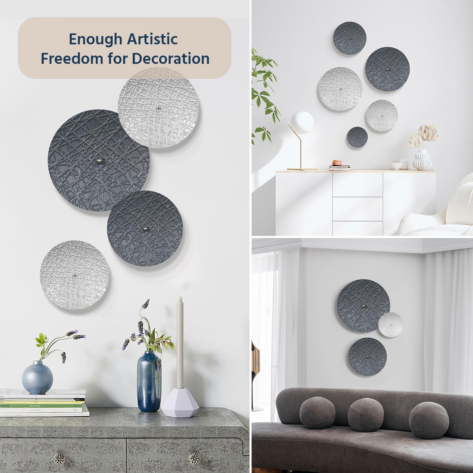TEIPAI Silver and Gray Metal Wall Decor for Living Room, 7PCS Hanging Wall Art Sculptures for Office Dining Room Decoration, Modern Silver Home Decor for Apartment Bedroom New Home Gift