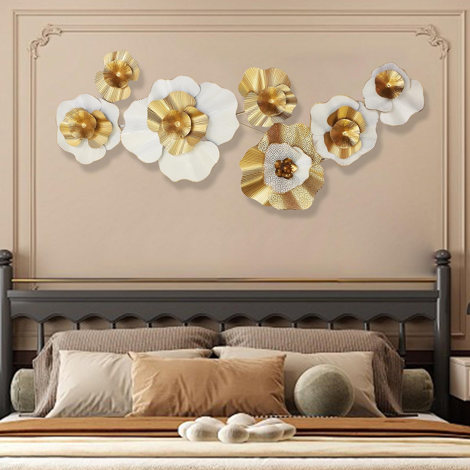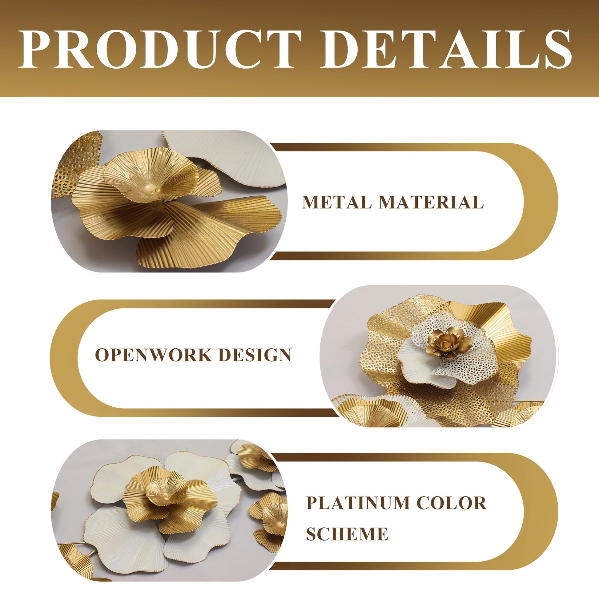 White Gold Abstract Wall Decor - Modern Metal Wall Sculptures, Large 3D Vertical 49"*25" Flower Wall Decor for Living Room, Dining Room, Bedroom
