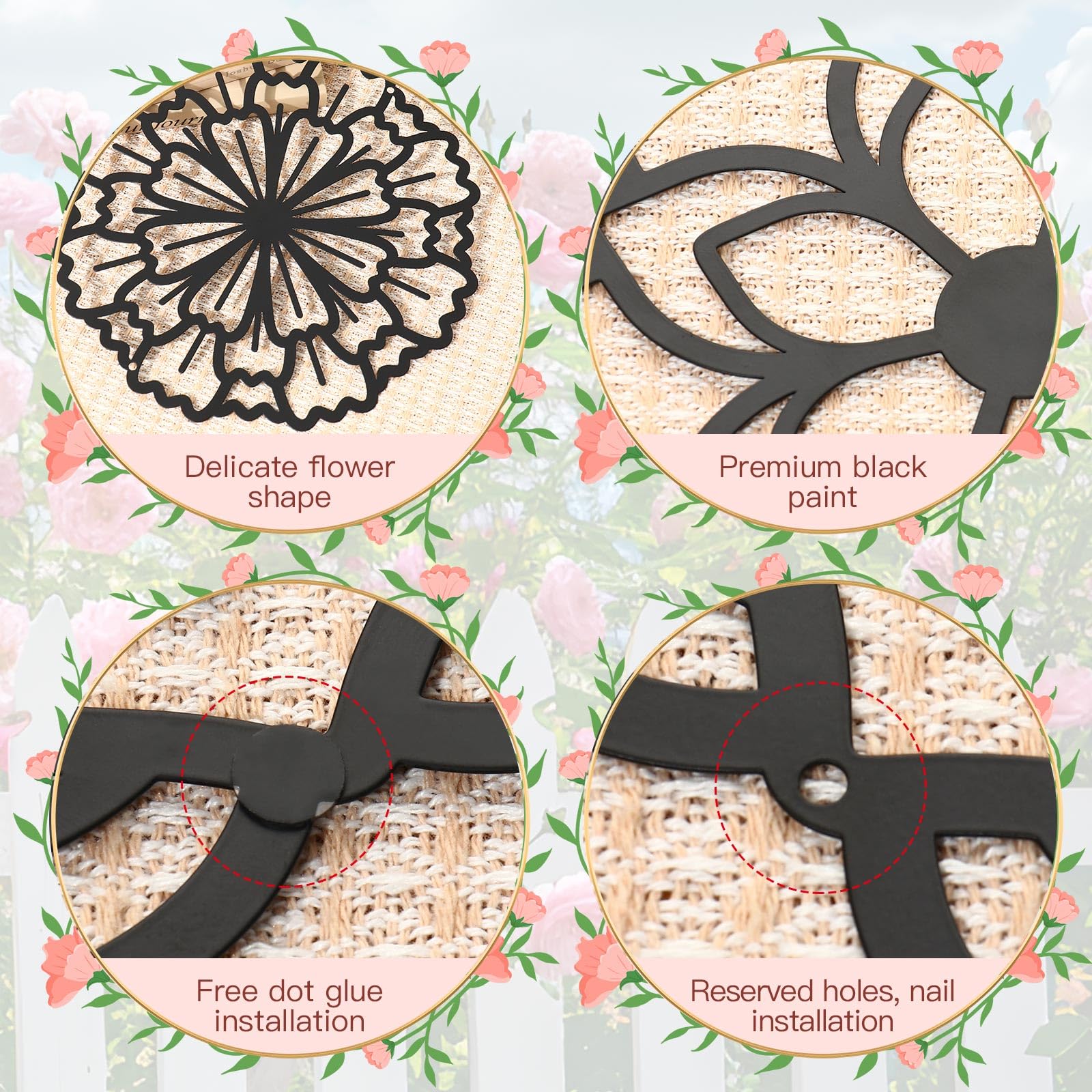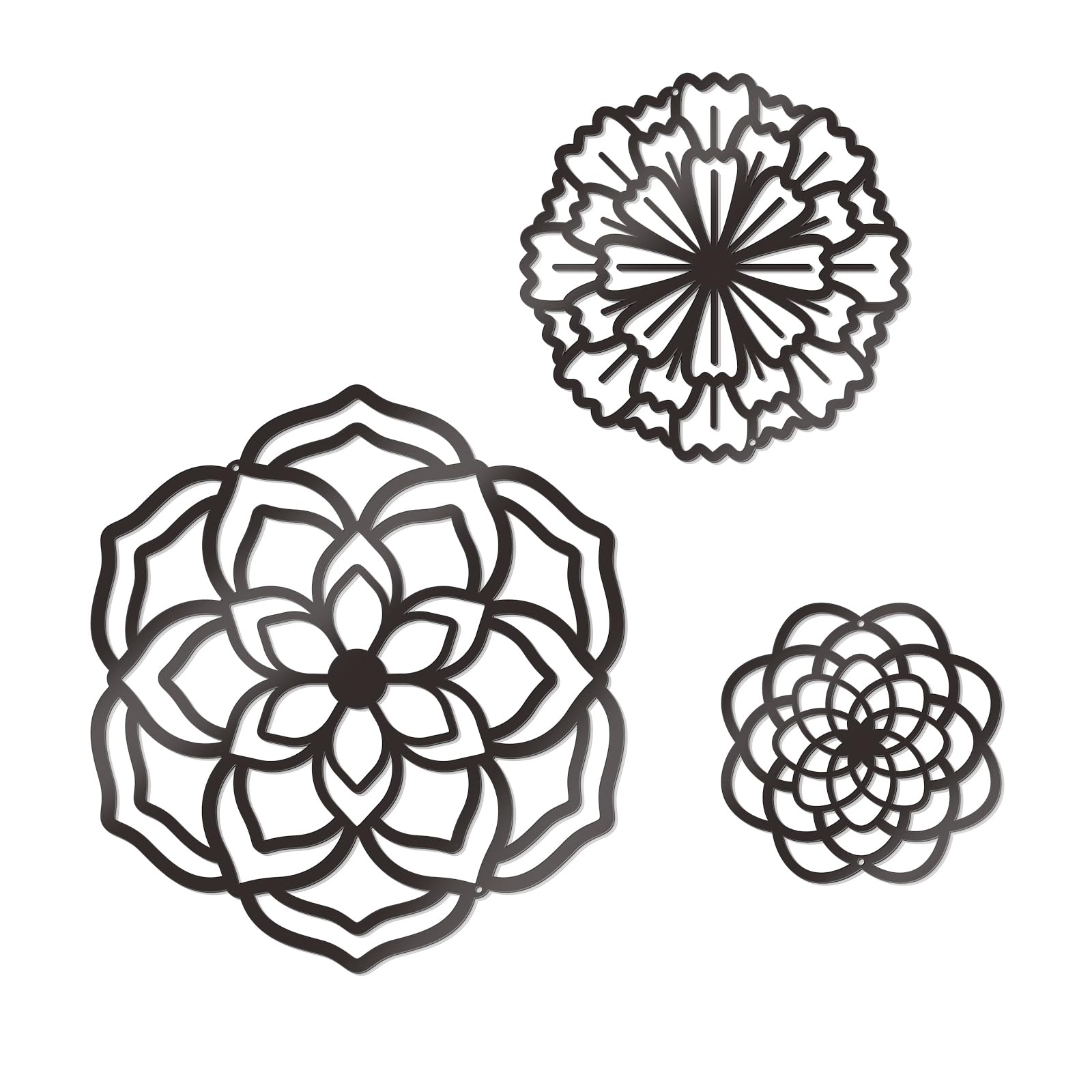 - Unique design: The 3 pcs metal flower wall decors are designed with three different concise flower patterns. These unique wall artworks decorating on the wall of your home will make you feel relaxed and happy.